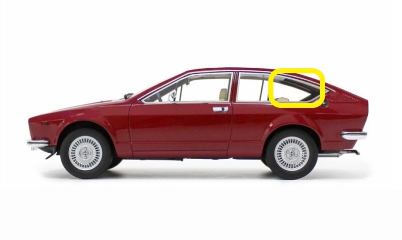 ALFA ROMEO ALFETTA GTV 2000 - 1/1977 to 1/1988 - 2DR COUPE - LEFT SIDE REAR OPERA GLASS