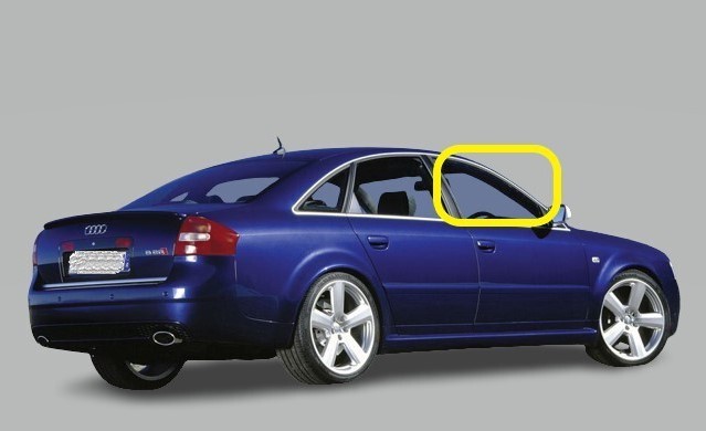AUDI A6/RS6/S6 C5 - 10/1997 TO 1/2005 - 4DR SEDAN/5DR WAGON - DRIVERS - RIGHT SIDE FRONT DOOR GLASS - 2 HOLES - GREEN