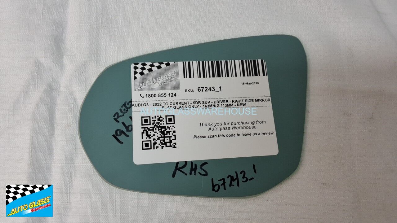 AUDI Q3 - 2022 TO CURRENT - 5DR SUV - DRIVER - RIGHT SIDE MIRROR - FLAT GLASS ONLY - 163MM X 113MM