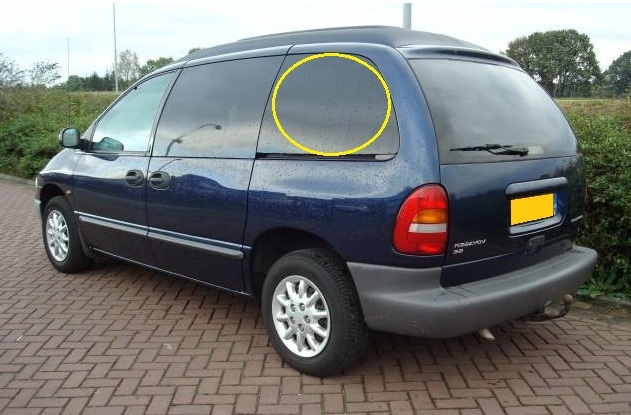 CHRYSLER GRAND VOYAGER NS LWB - 3/1997 to 4/2001 - 5DR WAGON - PASSENGER - LEFT SIDE REAR CARGO GLASS - 1123MM X 563MM - GREEN