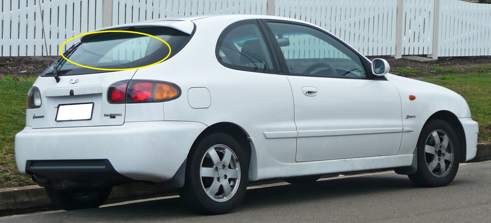 DAEWOO LANOS SX - 9/1997 to 10/2003 - 3DR/5DR HATCH - REAR WINDSCREEN GLASS (5 HOLES) - WITH SPOILER BOLTED