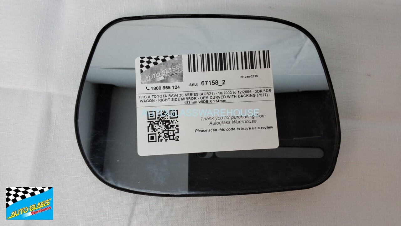 FITS A TOYOTA RAV4 20 SERIES (ACR21) - 10/2003 to 12/2005 - 3DR/5DR WAGON - RIGHT SIDE MIRROR - OEM CURVED WITH BACKING (7827) - 188mm WIDE X 134mm