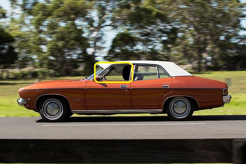 FORD FALCON XA/XB/XC - 1972 to 1979 - 4DR SEDAN - PASSENGERS - LEFT SIDE FRONT DOOR GLASS - FULL - GREEN