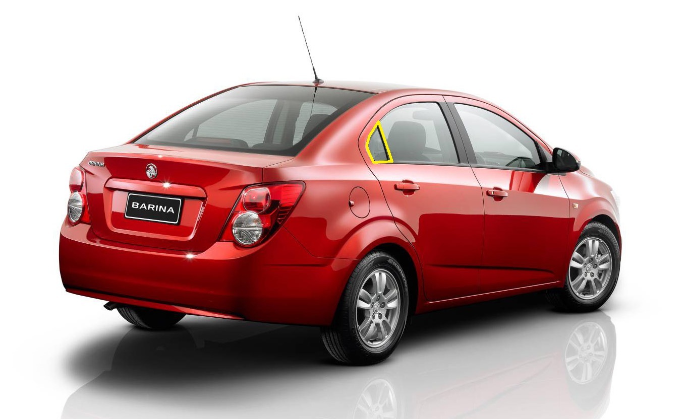 HOLDEN BARINA TM - 11/2012 to CURRENT - 4DR SEDAN - DRIVER - RIGHT SIDE REAR QUARTER GLASS - GREEN - 185MM X 243MM