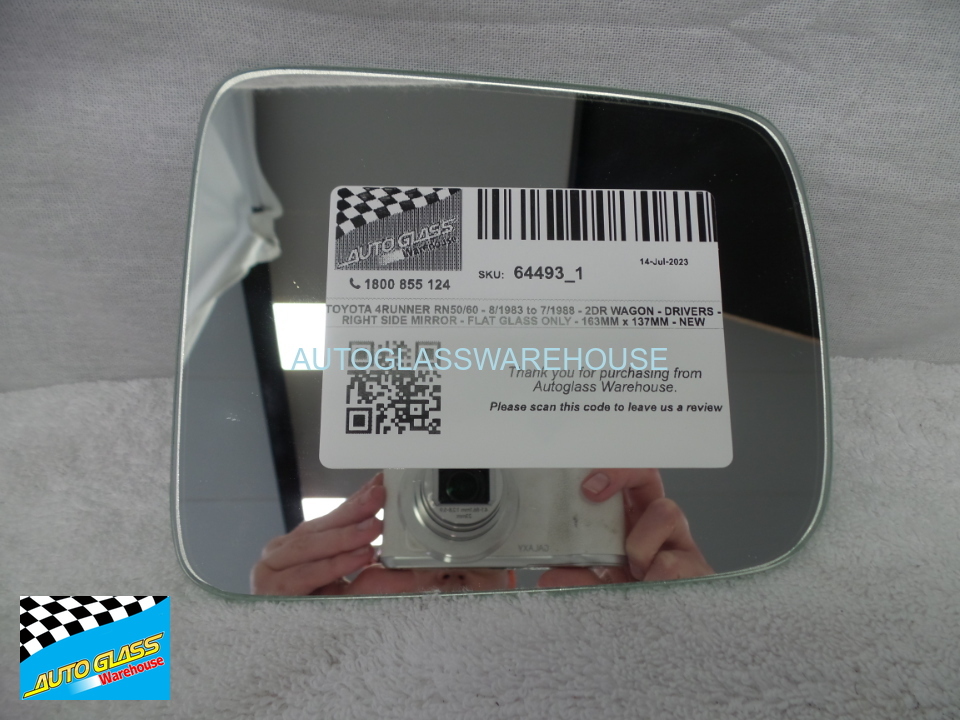 TOYOTA 4RUNNER RN50/60 - 8/1983 to 7/1988 - 2DR WAGON - DRIVERS - RIGHT SIDE MIRROR - FLAT GLASS ONLY - 163MM x 137MM