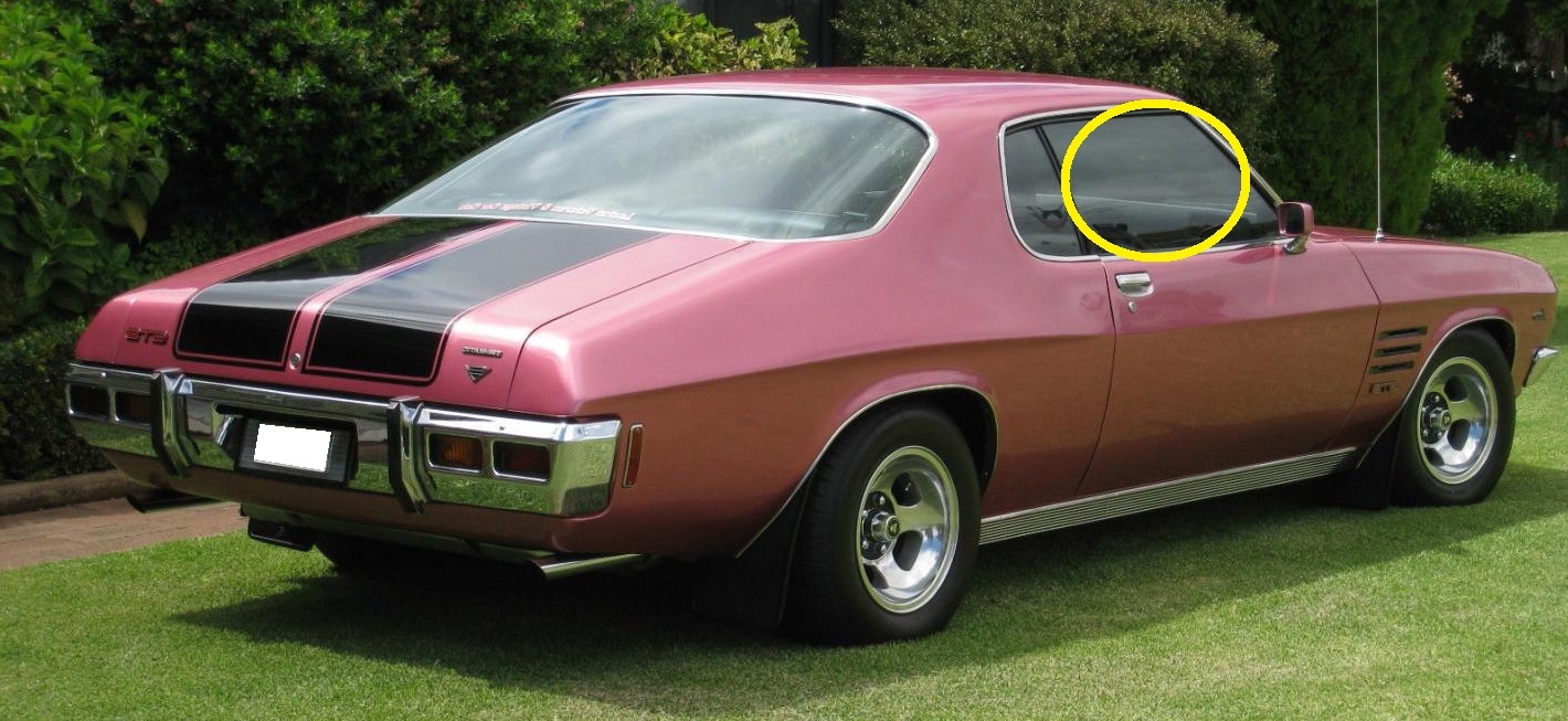 HOLDEN MONARO HQ - HJ - HX - 1971 to 1976 - 2DR COUPE (CHINA MADE) - DRIVERS - RIGHT SIDE FRONT DOOR GLASS - 1022MM X 614MM