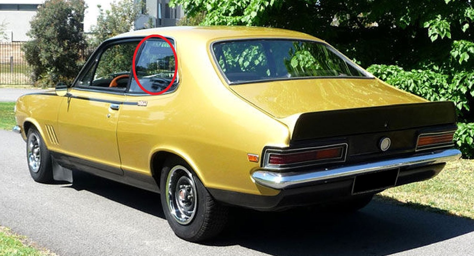 HOLDEN TORANA LC - LJ - 5/1967 to 3/1974 - 2DR COUPE - PASSENGER - LEFT SIDE REAR OPERA GLASS - GREEN - MADE TO ORDER
