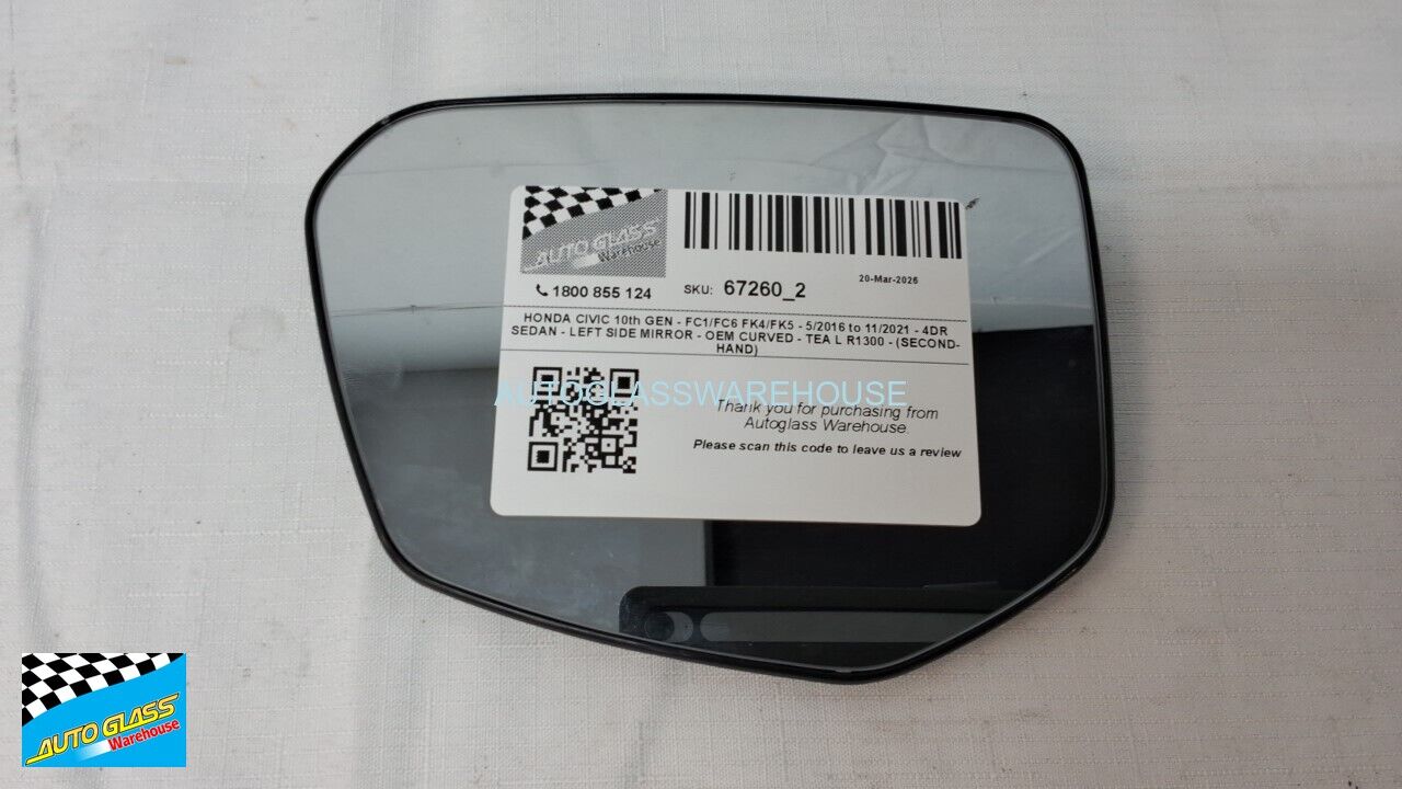 HONDA CIVIC 10th GEN - FC1/FC6 FK4/FK5 - 5/2016 to 11/2021 - 4DR SEDAN - LEFT SIDE MIRROR - OEM CURVED - TEA L R1300 - Suits Mirror E13 049682