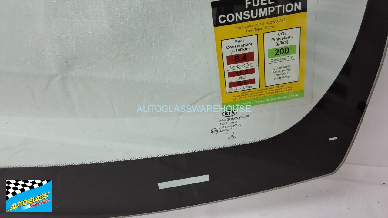 KIA SPORTAGE KNAPC82 - 7/2010 to 9/2015 - 5DR WAGON - FRONT WINDSCREEN GLASS - RAIN SENSOR LENS, WIPER HEATER