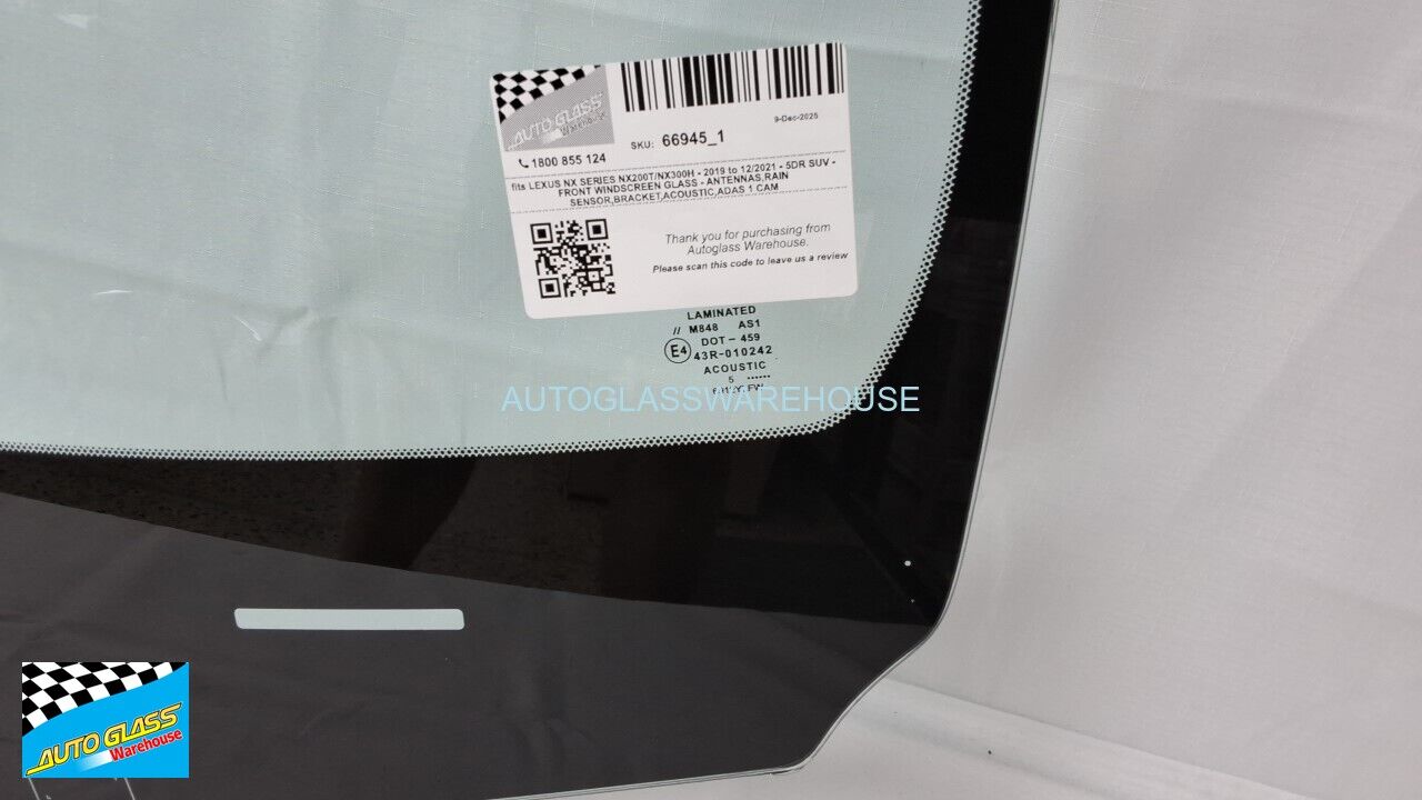 fits LEXUS NX SERIES NX200T/NX300H - 2019 to 12/2021 - 5DR SUV - FRONT WINDSCREEN GLASS - ANTENNAS,RAIN SENSOR,BRACKET,ACOUSTIC,ADAS 1 CAM