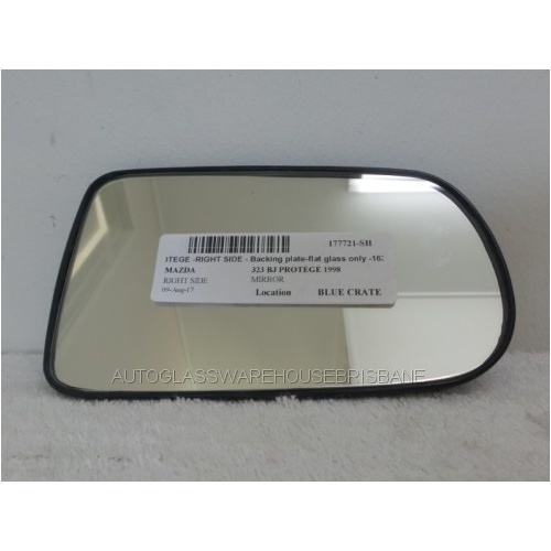 MAZDA 323 BJ PROTAGE - 9/1998 to 12/2003 - 4DR SEDAN - RIGHT SIDE MIRROR WITH BACKING PLATE - FLAT GLASS ONLY - 163mm wide X 90 high