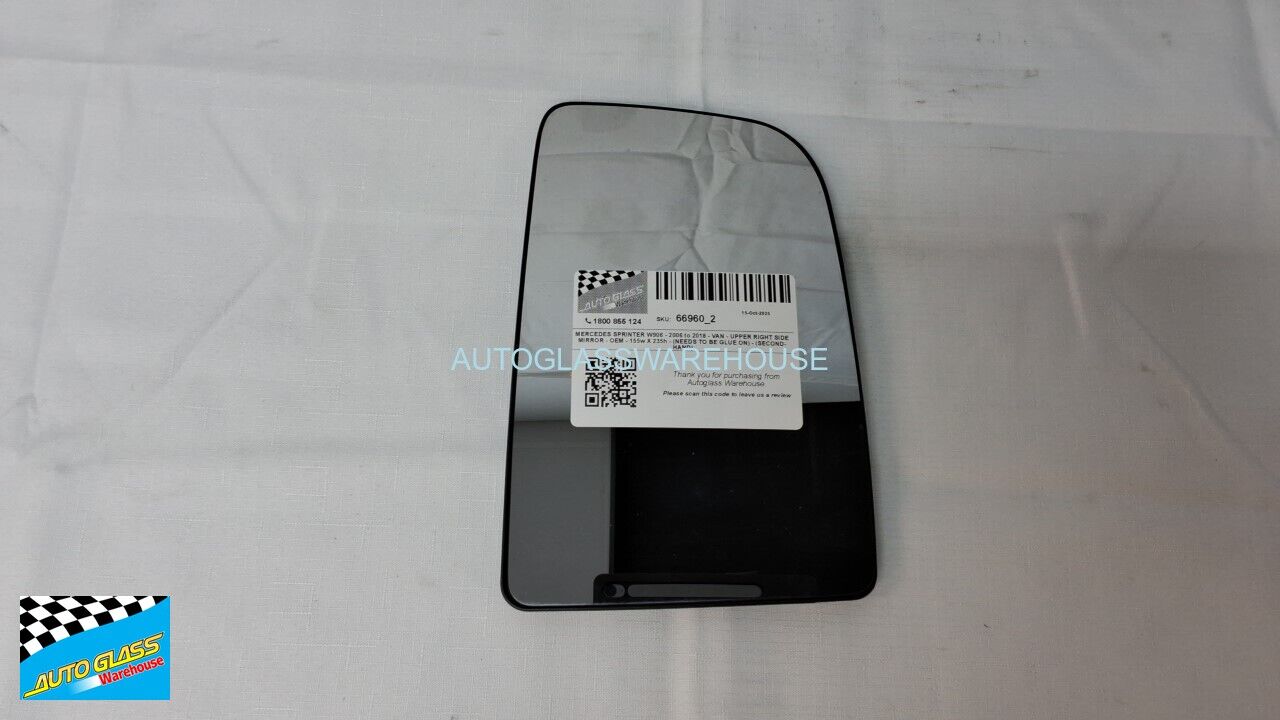 MERCEDES SPRINTER W906 - 2006 to 2018 - VAN - UPPER RIGHT SIDE MIRROR - OEM - 155w X 235h - (NEEDS TO BE GLUE ON)