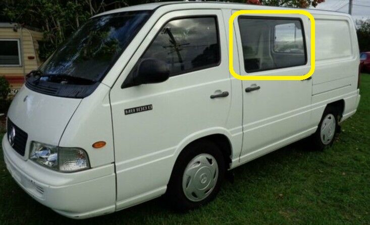 MERCEDES MB MB100 SWB - 11/1999 to 12/2004 - VAN - PASSENGERS - LEFT SIDE MIDDLE SLIDING DOOR GLASS - SPOON IN - 498MM HIGH X 1100MM WIDE