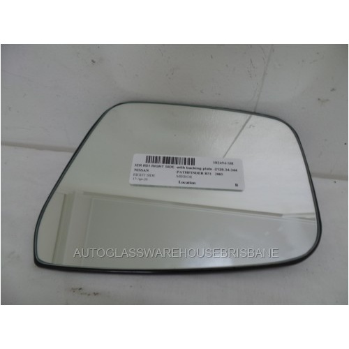 NISSAN PATHFINDER R51 - 7/2005 to 10/2013 - 4DR WAGON - DRIVERS - RIGHT SIDE MIRROR WITH BACKING PLATE - 2128.34.344 - FLAT GLASS 200 X 155H