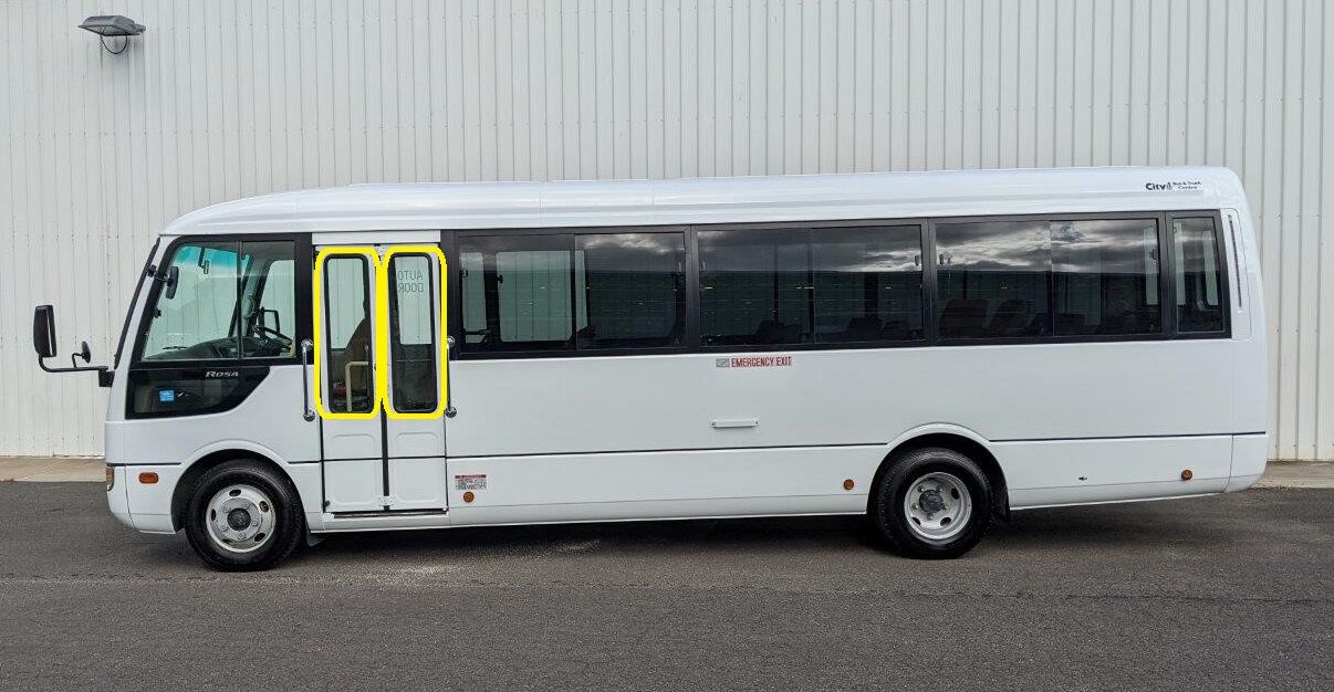 MITSUBISHI ROSA UE6/BE6 - 1/1997 to CURRENT - BUS - PASSENGERS - LEFT SIDE FOLDING DOOR GLASS - 257 WIDE X 1015 CENTER HEIGHT