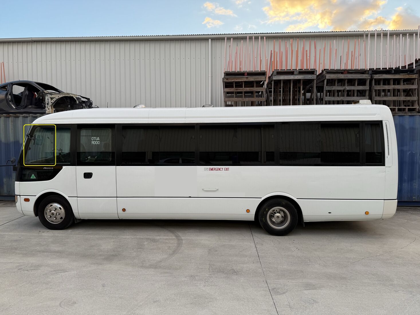 MITSUBISHI ROSA UE6/BE6 - 8/2000 to CURRENT - BUS - LEFT SIDE FRONT WINDOW SLIDING GLASS - SLIDES BACKWARDS (FIRST PIECE) - 2 HOLES -773 HIGH
