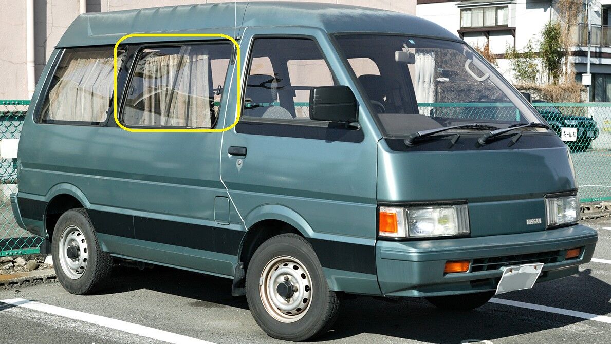 NISSAN NOMAD C22 - 12/1986 to 12/1993 - VAN - DRIVERS - RIGHT SIDE FRONT VENTED GLASS - 4 HOLES
