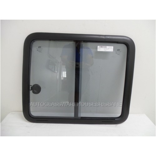 RENAULT KANGOO - X76 - 8/2004 to 10/2010 - VAN - PASSENGERS - LEFT SIDE SLIDING DOOR GLASS - FRONT PIECE SLIDES BACK TO OPEN - GREY (BRISBANE ONLY)