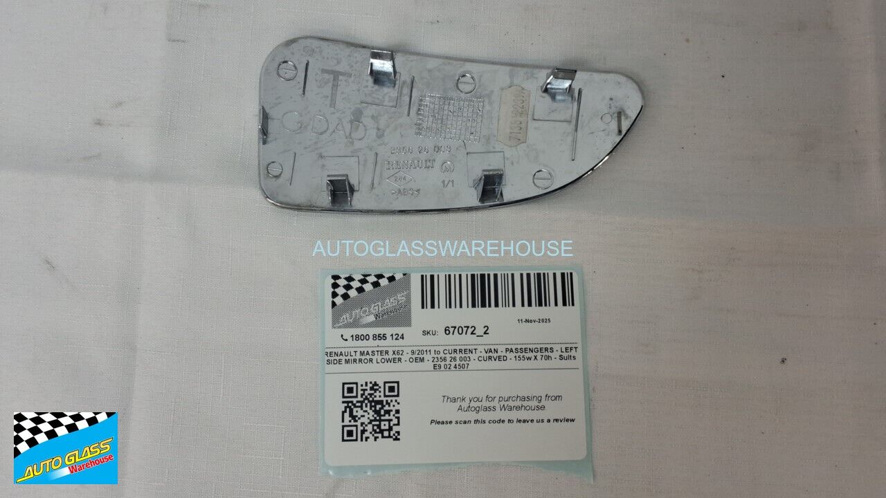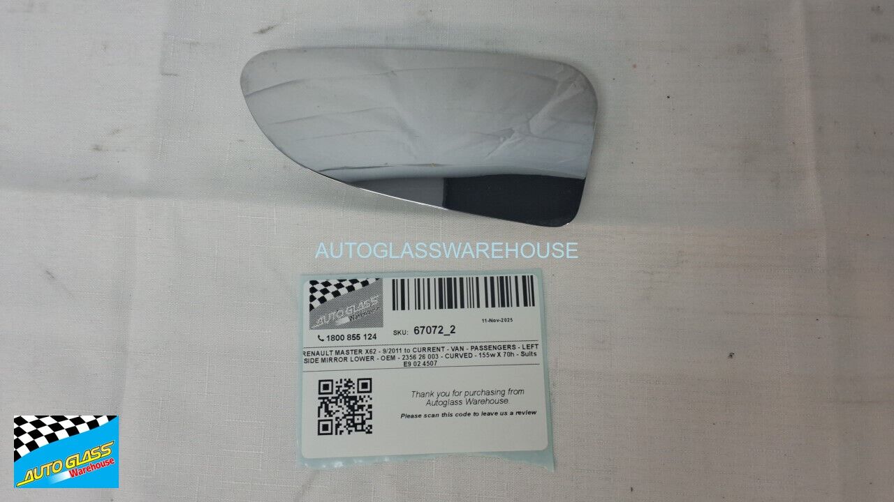 RENAULT MASTER X62 - 9/2011 to CURRENT - VAN - PASSENGERS - LEFT SIDE MIRROR LOWER - OEM - 2356 26 003 - CURVED - 155w X 70h - SUITS E9 02 4507