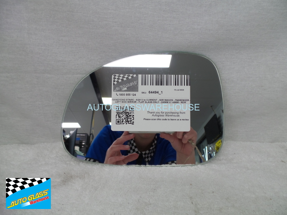 SSANGYONG STAVIC - 6/2013 to CURRENT - 5DR WAGON - PASSENGER - LEFT SIDE MIRROR - FLAT GLASS ONLY - 206MM X 149MM