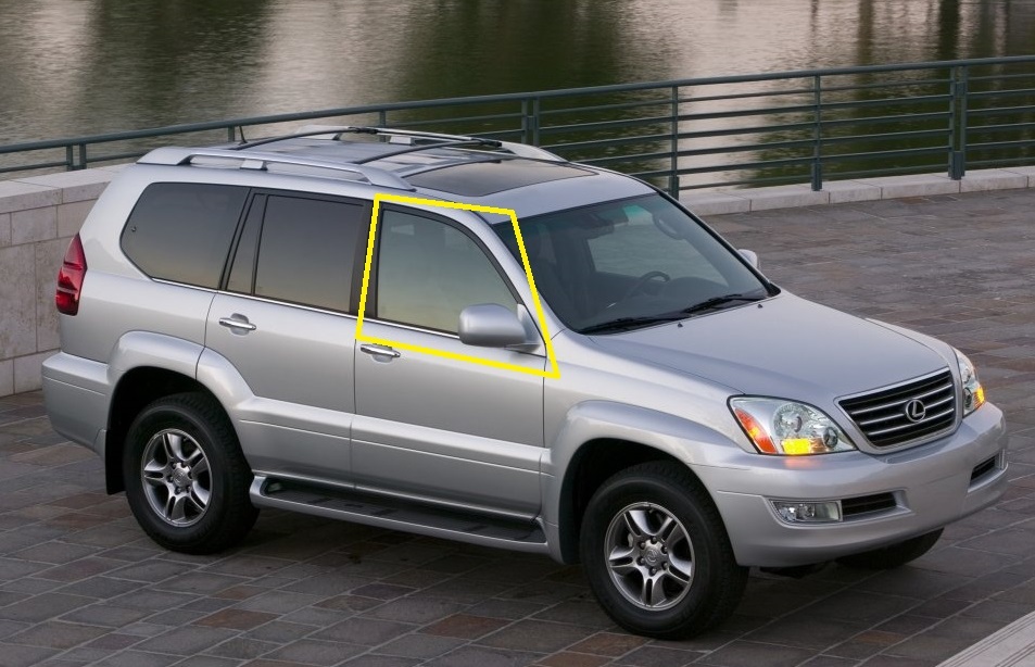 suitable for LEXUS GX470 J120 SERIES - 11/2002 to 7/2009 - 4DR SUV - RIGHT SIDE FRONT DOOR GLASS - GREEN