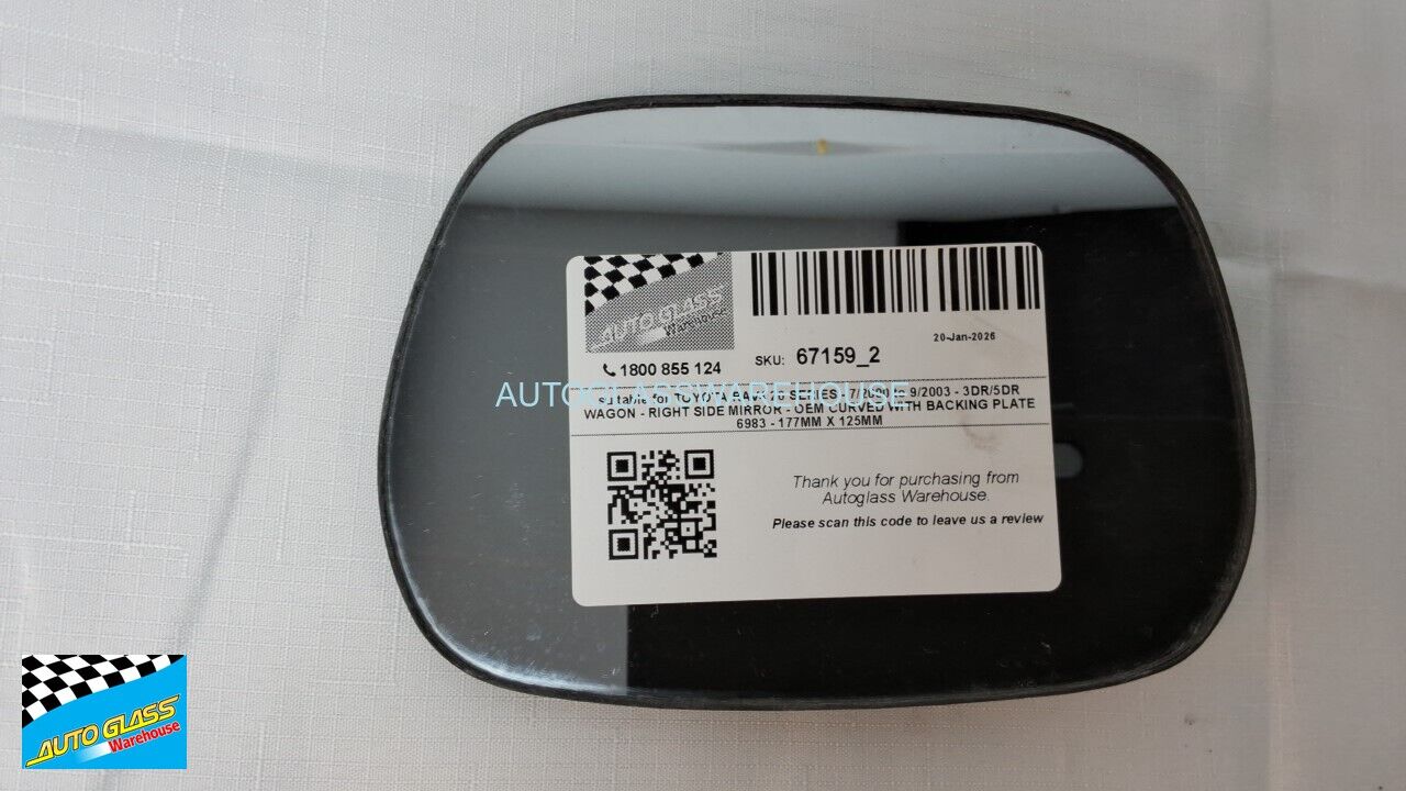 suitable for TOYOTA RAV4 20 SERIES - 7/2000 to 9/2003 - 3DR/5DR WAGON - DRIVERS - RIGHT SIDE MIRROR - OEM CURVED WITH BACKING PLATE 6983 - 177MM X 125