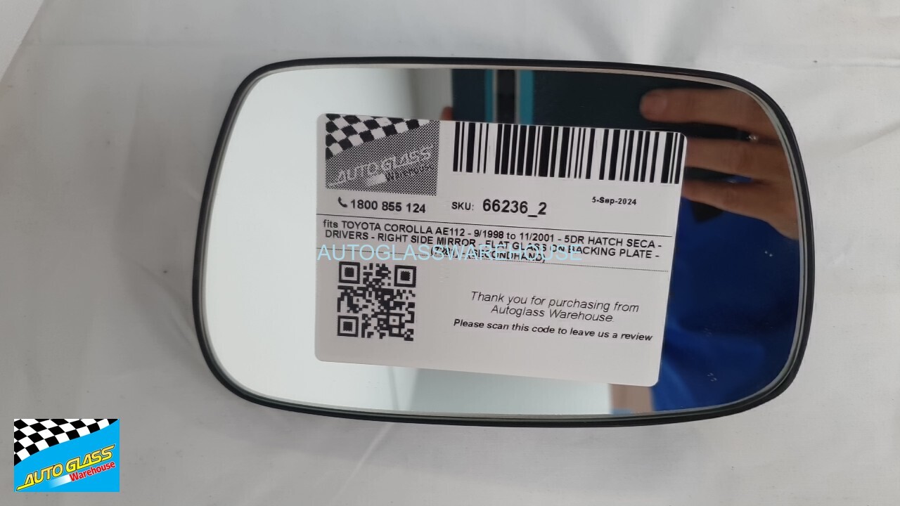 suitable for TOYOTA COROLLA AE112 - 9/1998 to 11/2001 - 5DR HATCH SECA - DRIVERS - RIGHT SIDE MIRROR - FLAT GLASS ON BACKING PLATE - (7281)