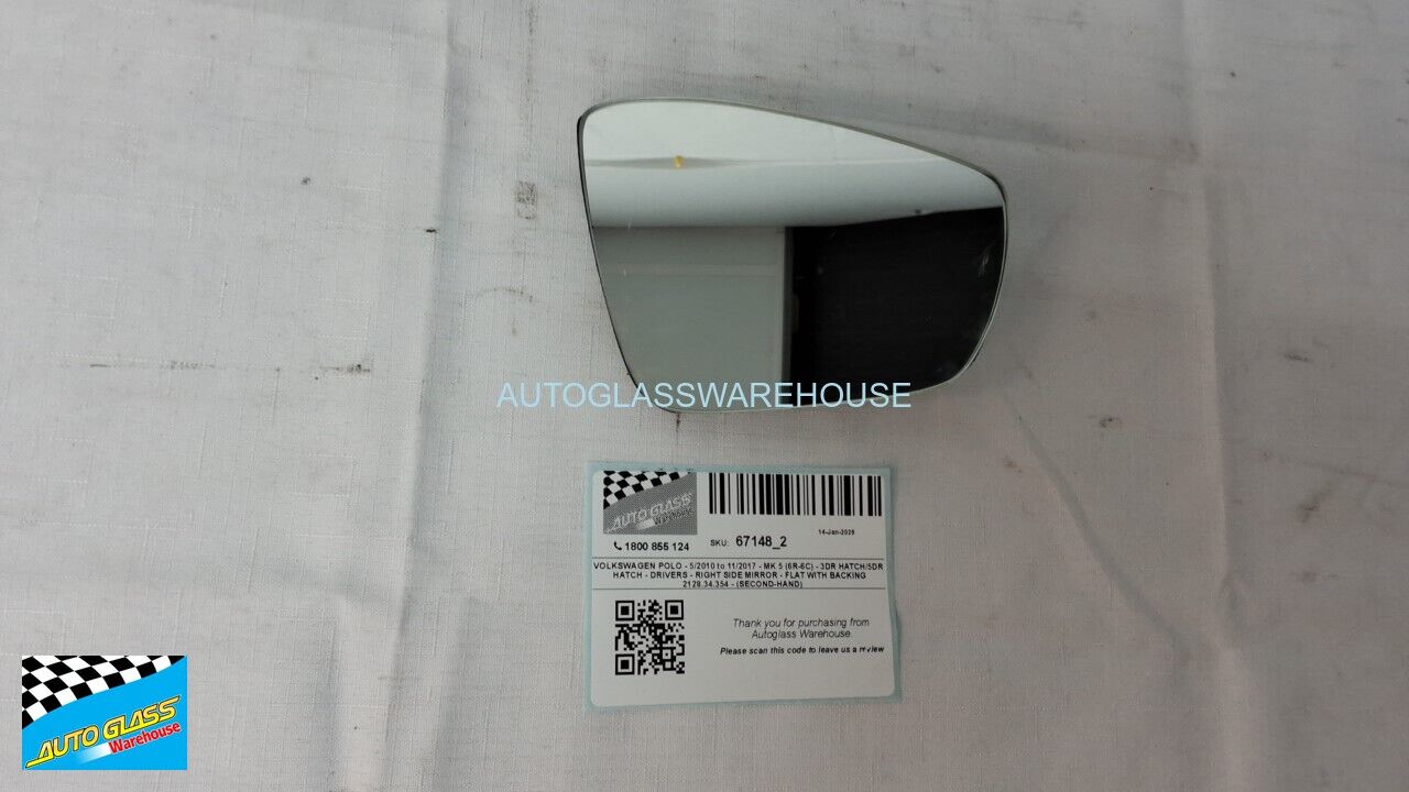 VOLKSWAGEN POLO - 5/2010 to 11/2017 - MK 5 (6R-6C) - 3DR HATCH/5DR HATCH - DRIVERS - RIGHT SIDE MIRROR - FLAT GLASS WITH BACKING 2128.34.354